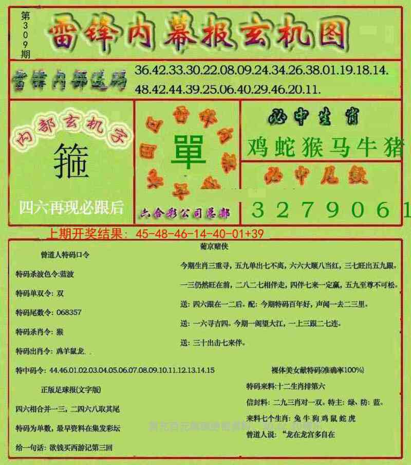309期:男女两肖女肖+龙猴』开:鼠06错